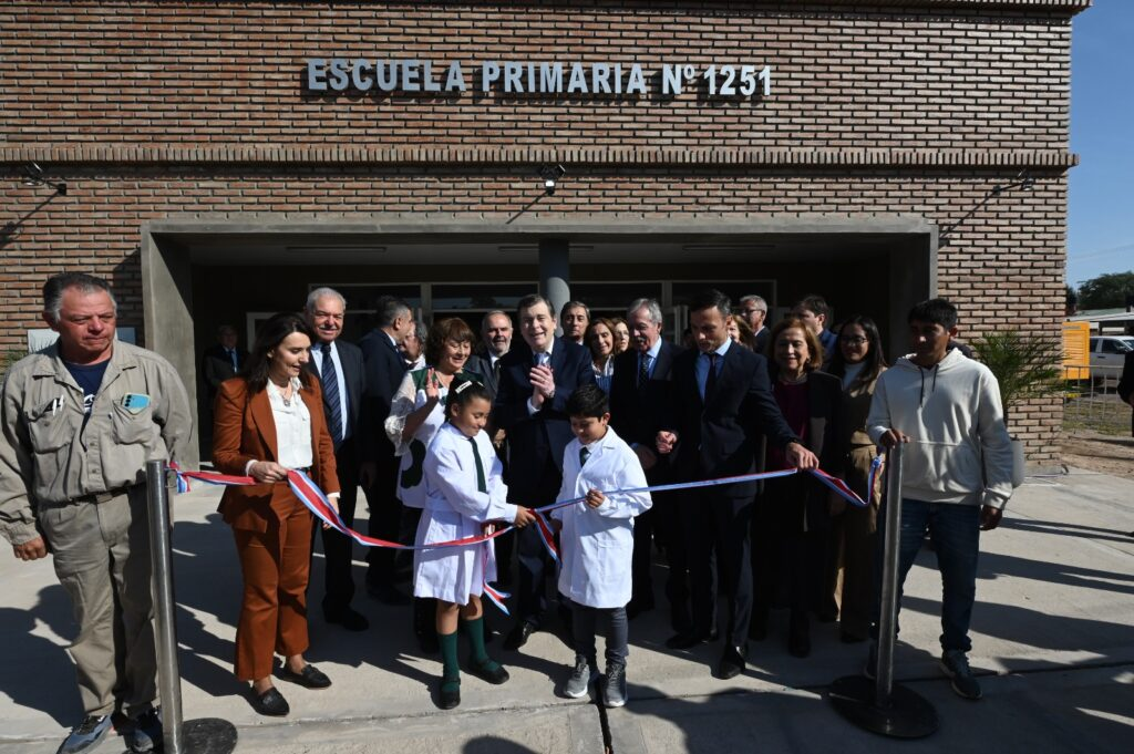 También la presidente del Consejo General de Educación, María Elena Herrera, y el secretario de Obras Públicas, Jorge Zuaín, para dejar inaugurado el edificio de la Escuela N° 1251, donde 94 alumnos recibirán una educación de calidad, con las mismas herramientas que los niños de toda la provincia. El edificio cuenta con aulas completamente equipadas, laboratorio, patio, biblioteca y una sala de informática.