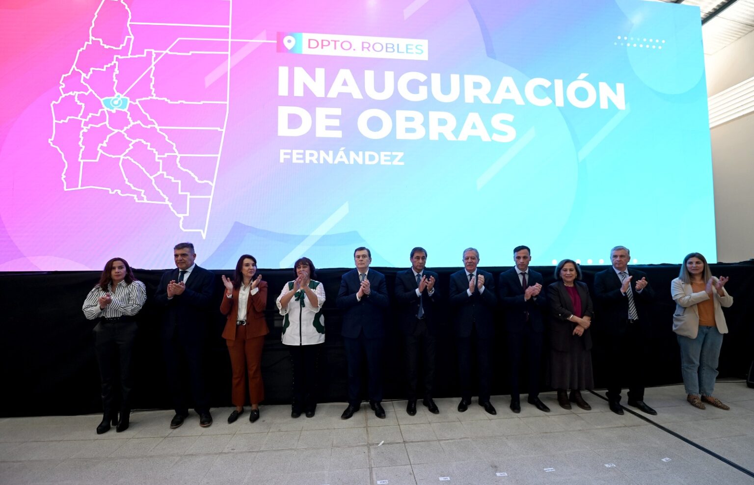 El gobernador Gerardo Zamora dejó formalmente inaugurada este viernes la nueva Escuela Primaria N° 1.251; también entregó 6 viviendas sociales y habilitó el Complejo Polideportivo y Natatorio Cubierto en la ciudad de Fernández, cabecera del departamento Robles.