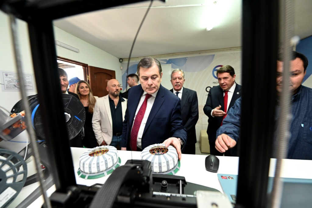 El gobernador Gerardo Zamora participó este jueves de la ceremonia de inauguración de la planta Proyecto QELQA – Industria Gráfica 3D, ubicada en calle Santa Rosa del barrio Mosconi de la ciudad Capital.