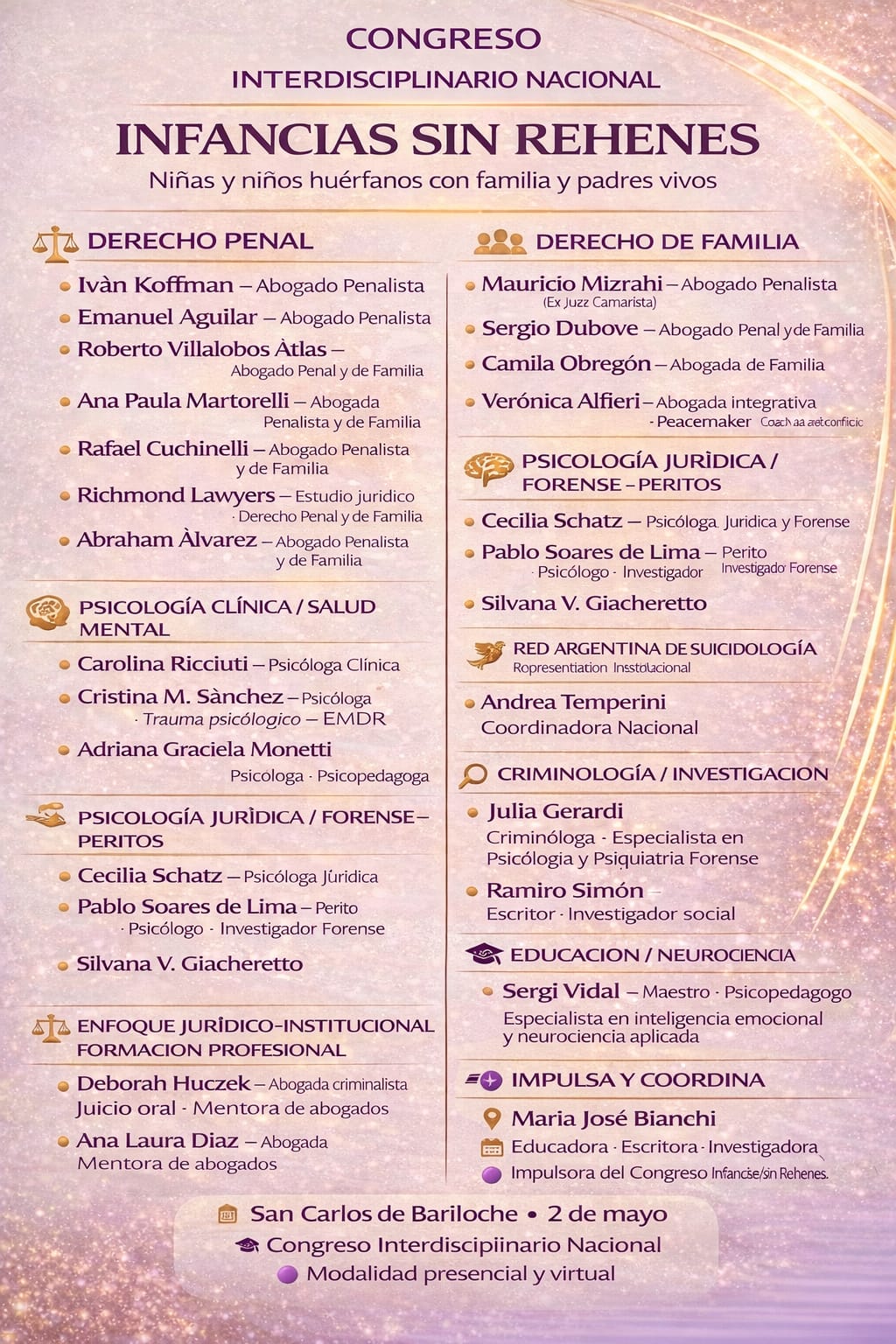 El congreso es impulsado por María José Bianchi, educadora, escritora e investigadora independiente, reconocida por su compromiso sostenido con la defensa de los derechos de la infancia y la visibilización de problemáticas silenciadas.